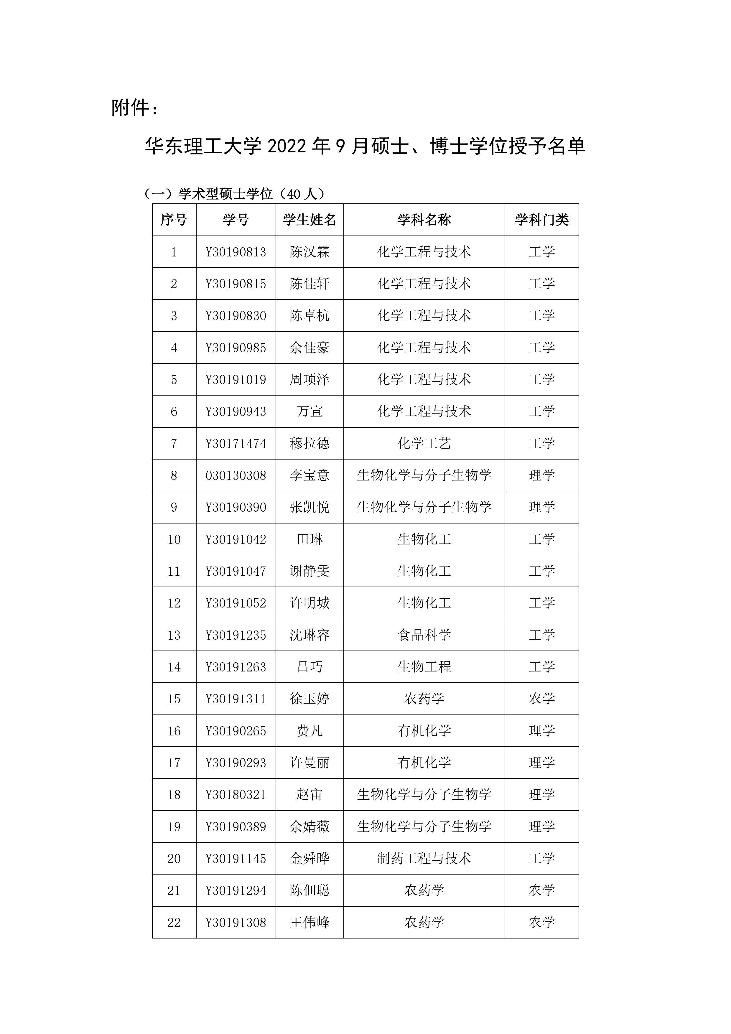 华东理工大学关于2022年9月授予硕士、博士学位的决定