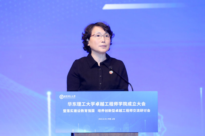 孙真荣在致辞中表示,上海深入学习贯彻党的二十大精神和中央人才工作会议“培养大批卓越工程师”的重要讲话精神,将卓越工程师培养作为上海高等教育高质量发展的重要方向和加快建设高水平人才高地的重要内容,印发《上海卓越工程师培养专项工作方案》,在人才奖励表彰、考核评价等方面给予政策支持,出台一系列促进卓越工程师培养的新举措。希望华东理工大学以成立卓越工程师学院为契机,聚焦重点领域,着力深化产教融合、科教融汇,探索创新型卓越工程人才培养的新范式,为服务国家重大战略和上海建设具有全球影响力的科技创新中心作出新的更大贡献。