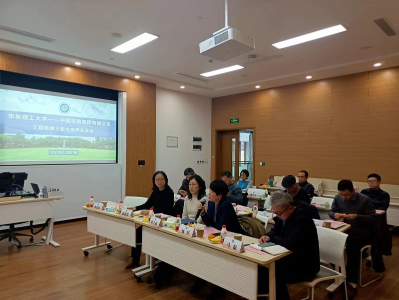 研究生院副院长郁惠蕾向国药集团来宾介绍了我校研究生培养特色和发展历程,汇报了我校工程硕博士专项工作的相关举措和后续安排,并希望此次对接交流会为下一步确立研究方向、创新合作模式和签署联培协议等工作奠定坚实的基础。生物工程学院副院长郑高伟、刘琴和药学院副院长马磊就学院人才培养和科研情况做了汇报。