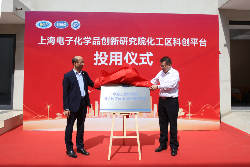 5月22日,上海电子化学品创新研究院化工区科创平台投用仪式在上海化学工业区举行。在仪式中,上海市教育委员会副主任孙真荣、华东理工大学校长轩福贞共同为华东理工大学卓越工程师学院“电子化学品工程师技术中心”揭牌。