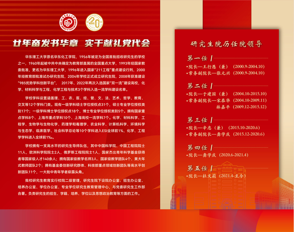 廿年奋发书华章 实干献礼党代会——华东理工大学研究生教育成果展暨研究生院建院20周年宣传展