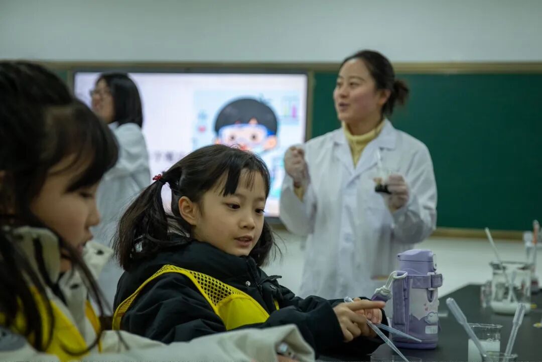 来到医科楼的孩子们有序体验无辐射模拟CT机,近距离感受医学科技的魅力;拿起听诊器、血压计,像模像样地化身“小医生”,与小伙伴相互测量、认真“坐诊”;手握实验包,各类趣味化学小实验轮番上演,孩子们在动手实践中感受到了医生的乐趣与责任。