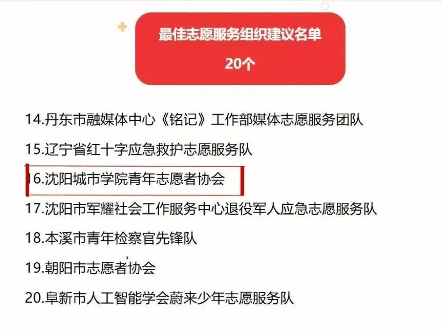 近日,中共辽宁省委社会工作部公示2025年度辽宁省志愿服务之星先进典型拟宣传选树名单。沈阳城市学院青年志愿者协会入选“最佳志愿服务组织”名单,该荣誉是由中共辽宁省委社会工作部选树表彰的全省志愿服务领域最高级别省级官方荣誉。