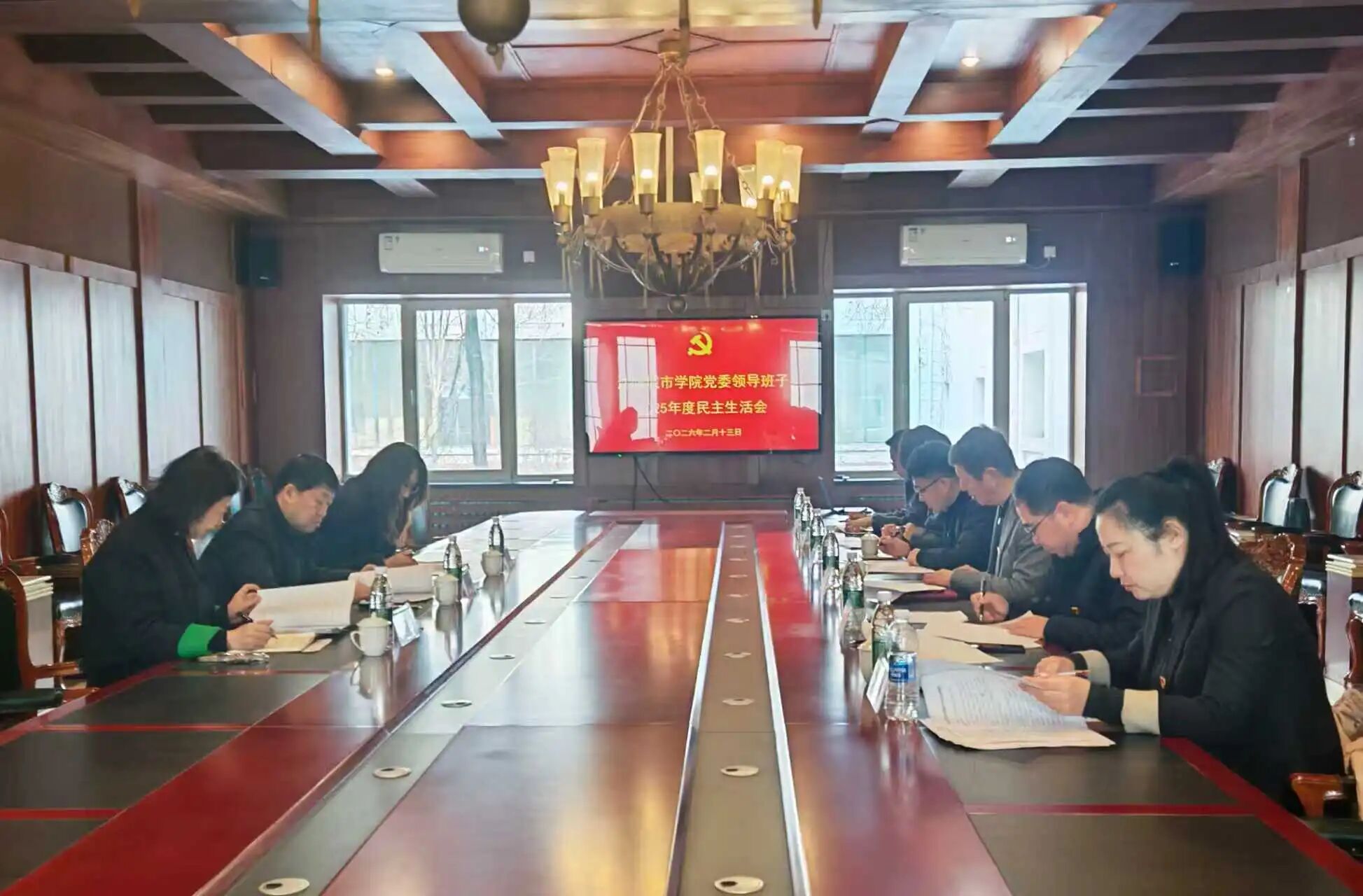 213日,沈阳城市学院在白卿宫会议室召开党委领导班子2025年度民主生活会。辽宁省委教育工委第五督导组组长、沈阳航空航天大学党委副书记张业伟,以及督导组成员鲁迅美术学院雕塑艺术学院党总支副书记刚莹、鲁迅美术学院党政办公室综合科科长易鹤同到会指导。学校党委书记刘怀民主持会议,党委领导班子全体成员参加会议。