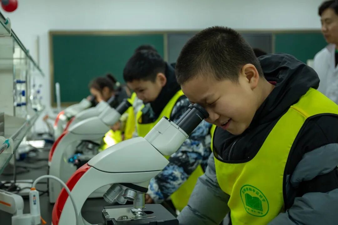 大家小心翼翼地拿起显微镜,调试镜头、观察玻片,看着视野中形态各异的细胞,不时发出阵阵惊叹,在动手操作中解锁微观世界的奥秘。